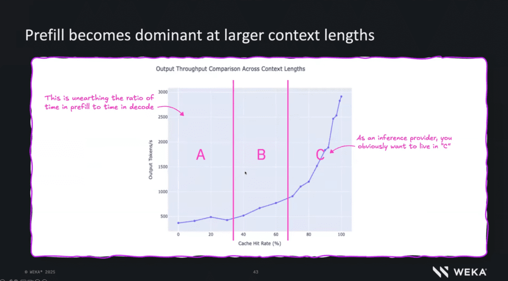 One of the most striking insights from WEKA’s data is the relationship between cache hit rate and throughput.
